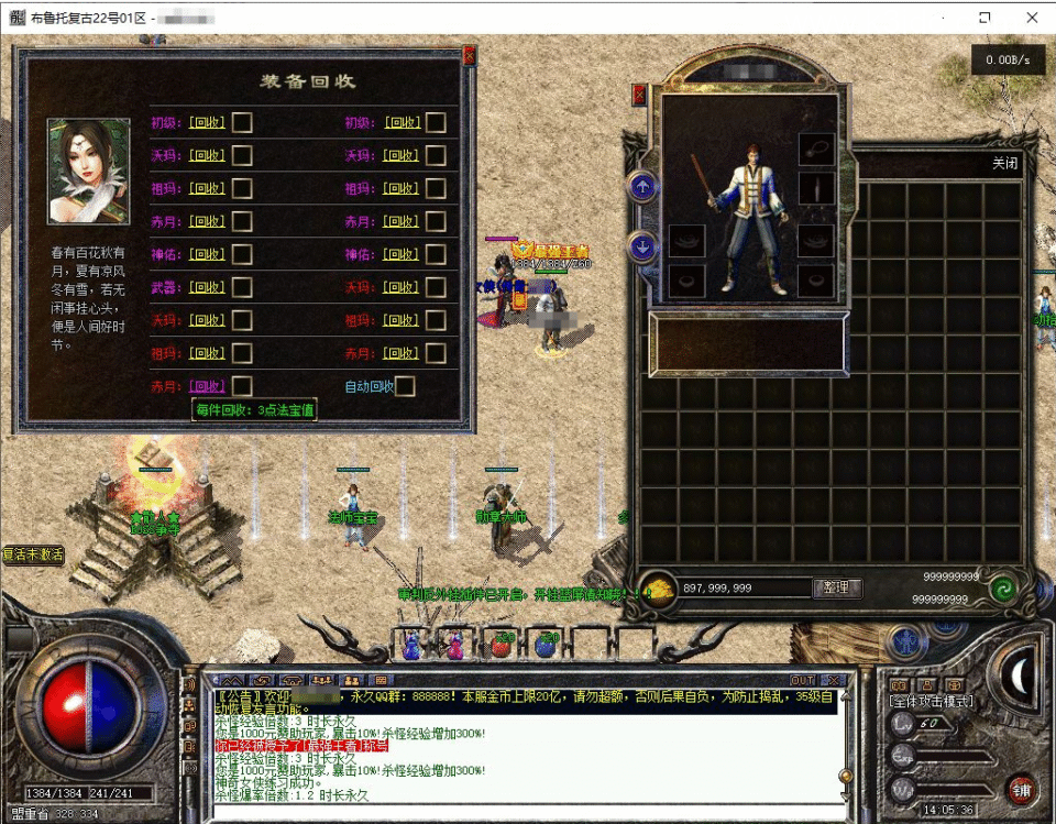 最后再提示一次本服属于长久复古版本,装备爆率偏低,非快餐服,适合骨灰玩家养老!