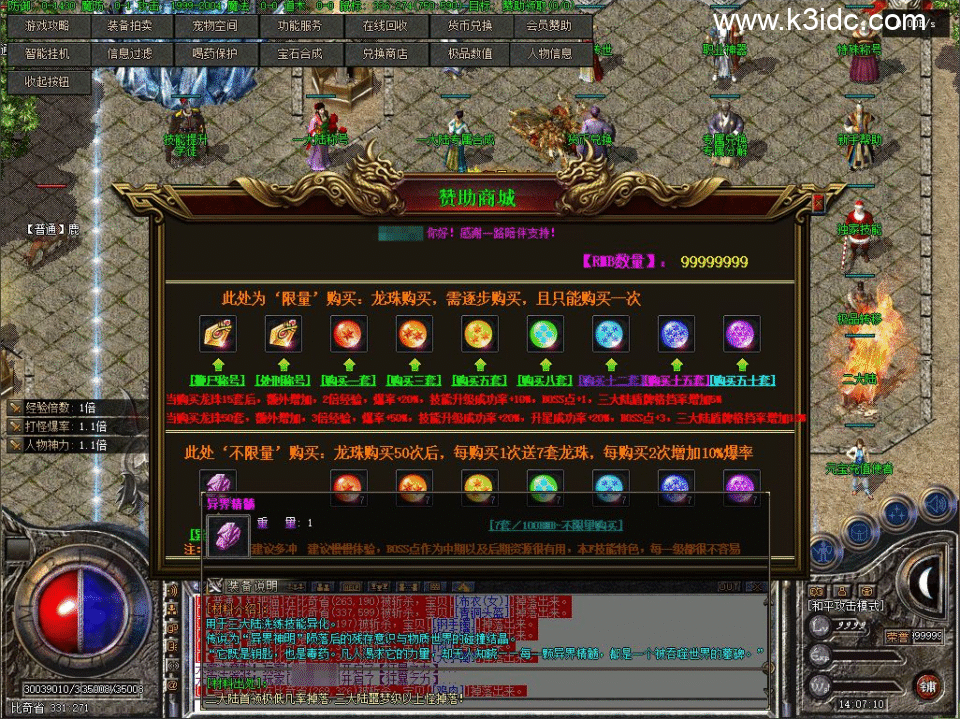 增加了BOSS点兑换NPC,BOSS点需要巨量的,我增加了一个BOSS点兑换券,所有怪都有爆率,当然BOSS爆率高点,每张BOSS点兑换券可以换一个BOSS点。